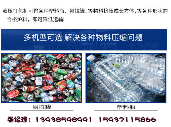 易拉罐飲料瓶打包機(jī)分為全自動、半自動兩大系列,采用PLC微電腦控制,主要用于大型再生資源回收站,主要打包的有金屬易拉罐,飲料瓶等廢品的要鎖成型,使用廢鋁打包機(jī)打包后的廢鋁具有外形尺寸統(tǒng)一整齊、比重大、密度高、縮小體積等優(yōu)勢,很大地縮減了廢紙所占的空間,降低了倉儲費(fèi)用及運(yùn)輸成本。