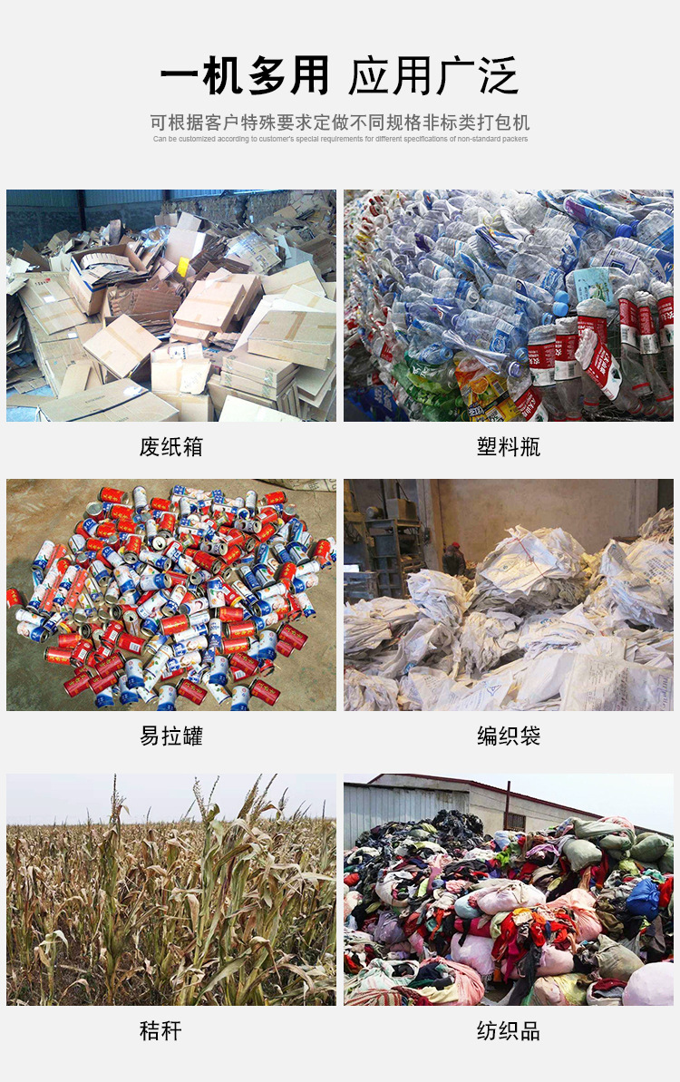 日前我在網(wǎng)上看到了很多客戶在一個(gè)評(píng)論區(qū)上問(wèn)了很多問(wèn)題,其中讓我很疑惑的是打包機(jī)物料包塊的尺寸為多少,這個(gè)怎么說(shuō),首先你要看你所購(gòu)買設(shè)備的大小來(lái)衡量物料塊,我們可以推薦下兩種帶門和不帶門的這兩款價(jià)格便宜,而且適用范圍廣泛,帶門屬于側(cè)門開(kāi)展過(guò)來(lái),而沒(méi)帶門只需要你將物料塊直接弄出來(lái)就可以,而它所打的物料是稻草,秸稈,青貯,高粱桿,竹子等松散物料,而有門所打的就很多,比如,廢紙類,塑料類,廢鋁類,花盒,彩鋼瓦等廢物料均可打包,